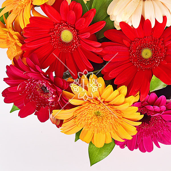 Радостные встречи – коробка с разноцветными герберами